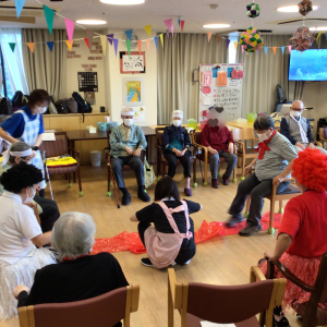 相手の風船を入れないように団扇で仰いで防ぎます。