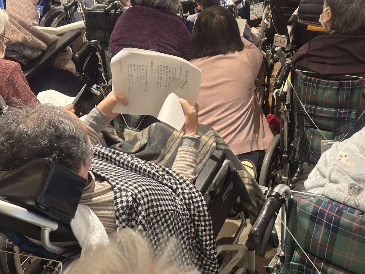 曲に合わせて手拍子をしたり、歌詞カードを見ながら歌ったり