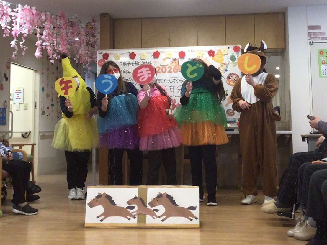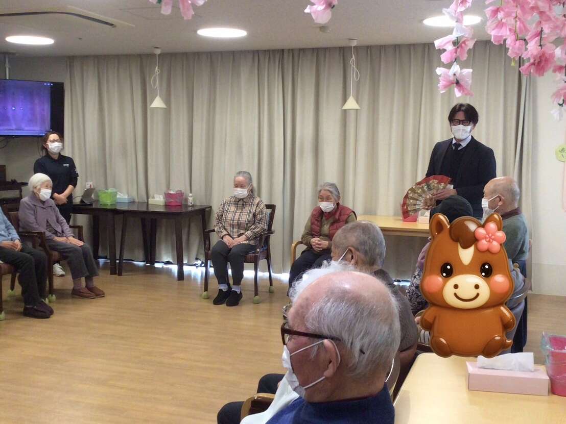 施設長からの新年の挨拶のあと、スペシャルゲストが登場し、会がスタート!